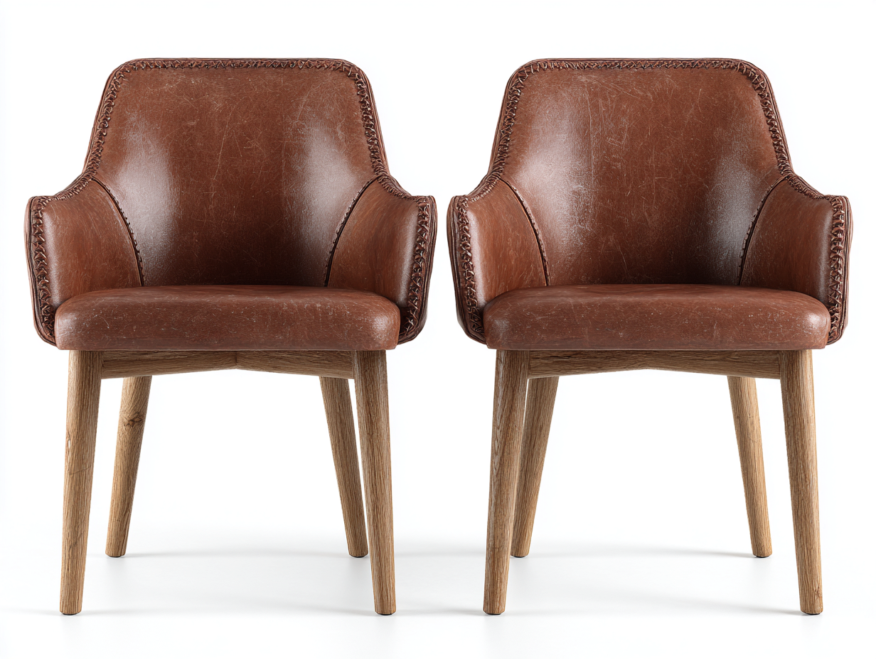 Esszimmerstühle Lederoptik Holzbeine 60x58x82 cm - Braun-Holzfarben - modernes Design für Essbereich