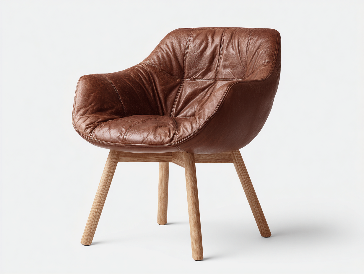 Esszimmerstuhl Lederoptik mit Holzbeinen 55x52x82 cm - braun - fuer Esszimmer - modernes Design